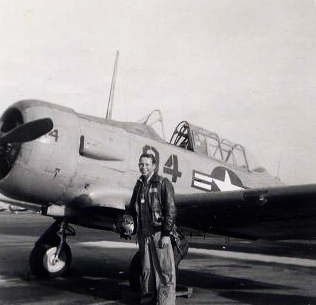 Here’s a picture of my Dad with the SNJ he learned to fly on in 1955!